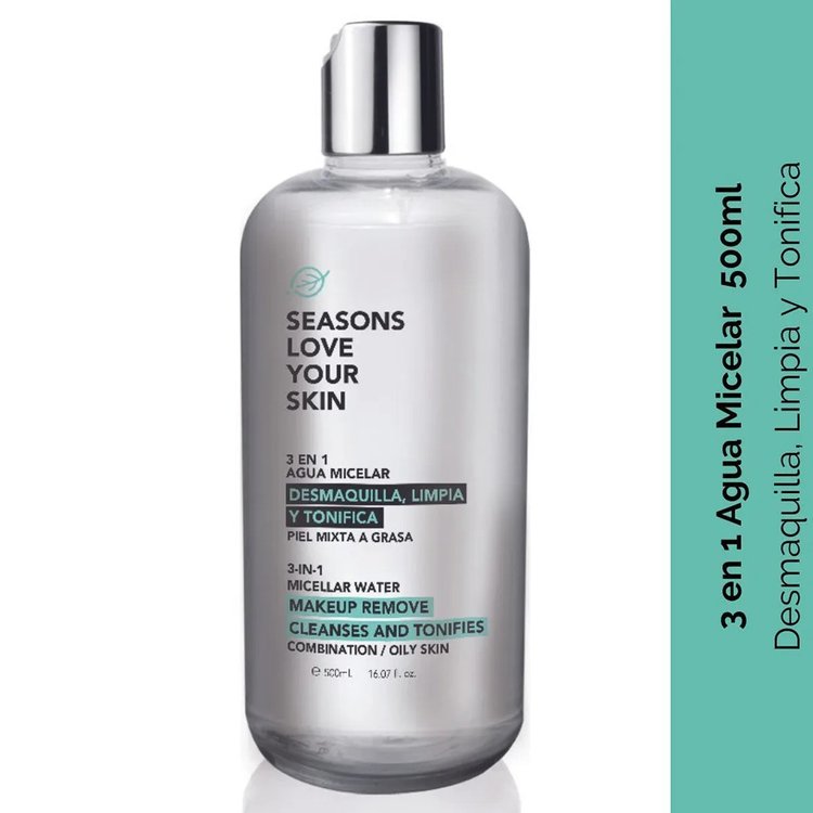 Agua Micelar 3 en 1 Piel Mixta a Grasa 500 ml - Seasons