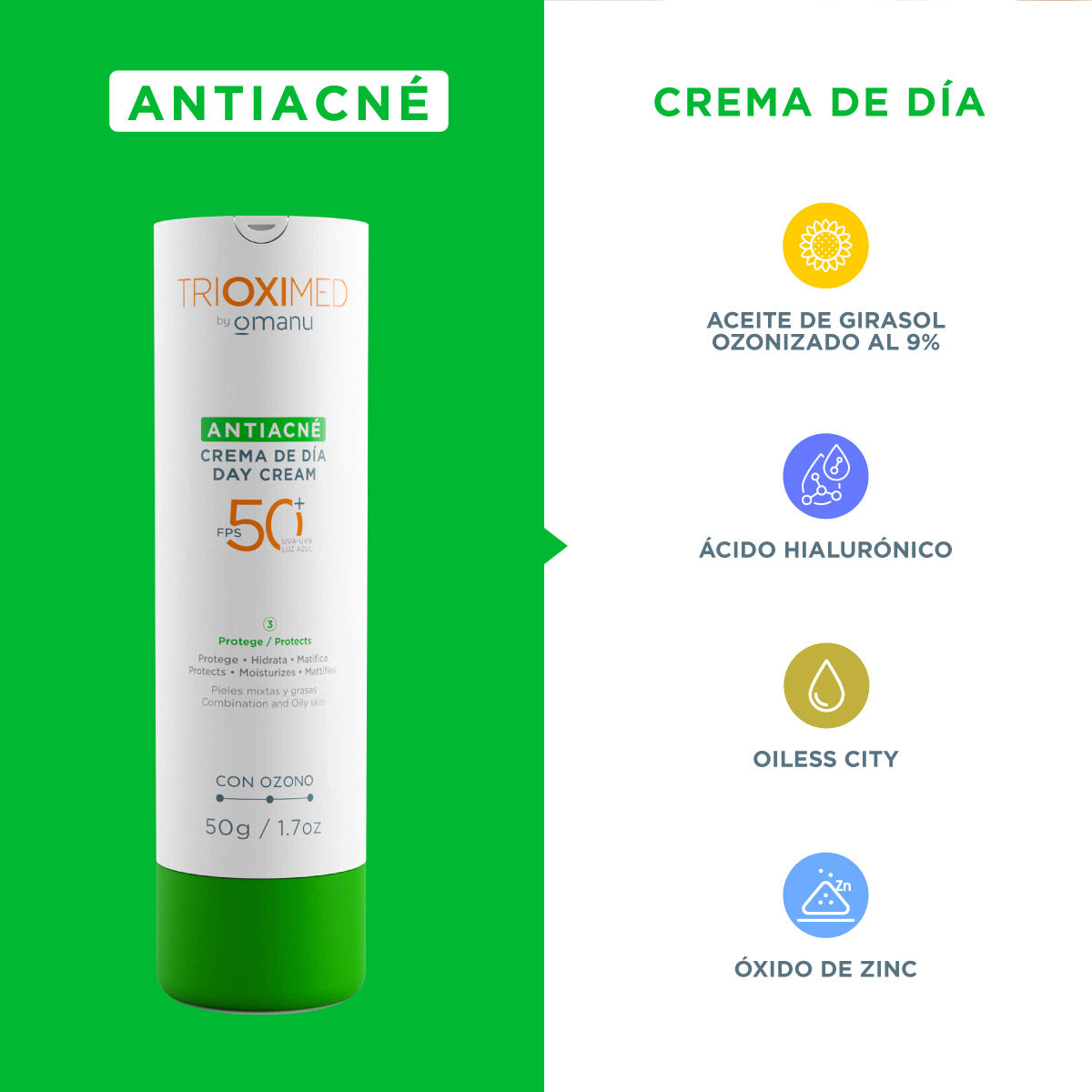 Fórmula diseñada para reducir el sebo, matificar y proteger del sol (UVA, UVB y luz azul), ayudando a prevenir inflamaciones por agentes externos. Úsala cada mañana en rostro, pecho, cuello y espalda, 30 minutos antes de salir.
