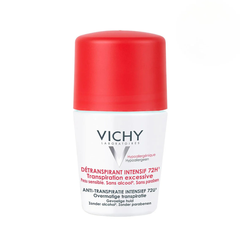 El Desodorante roll-on de Vichy ofrece una protección duradera de hasta 72 horas para hombres y mujeres con una sudoración excesiva, manteniendo las axilas frescas y secas, sin dejar residuos, incluso en momentos de estrés.