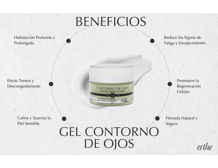 Este gel para el contorno de ojos está formulado con Baba de Caracol, colágeno, elastina y extractos naturales como aguacate, árnica y caléndula para ofrecer una hidratación profunda, suavidad y regeneración. Combate los signos de fatiga, envejecimiento y estrés, reduciendo líneas finas, arrugas, hinchazón y ojeras. Su efecto tensor, proporcionado por el extracto de algas rojas, mejora la firmeza y tonifica la piel. Ideal para piel seca o deshidratada, este gel refresca y rejuvenece el área ocular, dejándola más fresca y descansada. Se recomienda aplicar tanto en la mañana como en la noche, y puede refrigerarse para un efecto descongestionante más intenso.