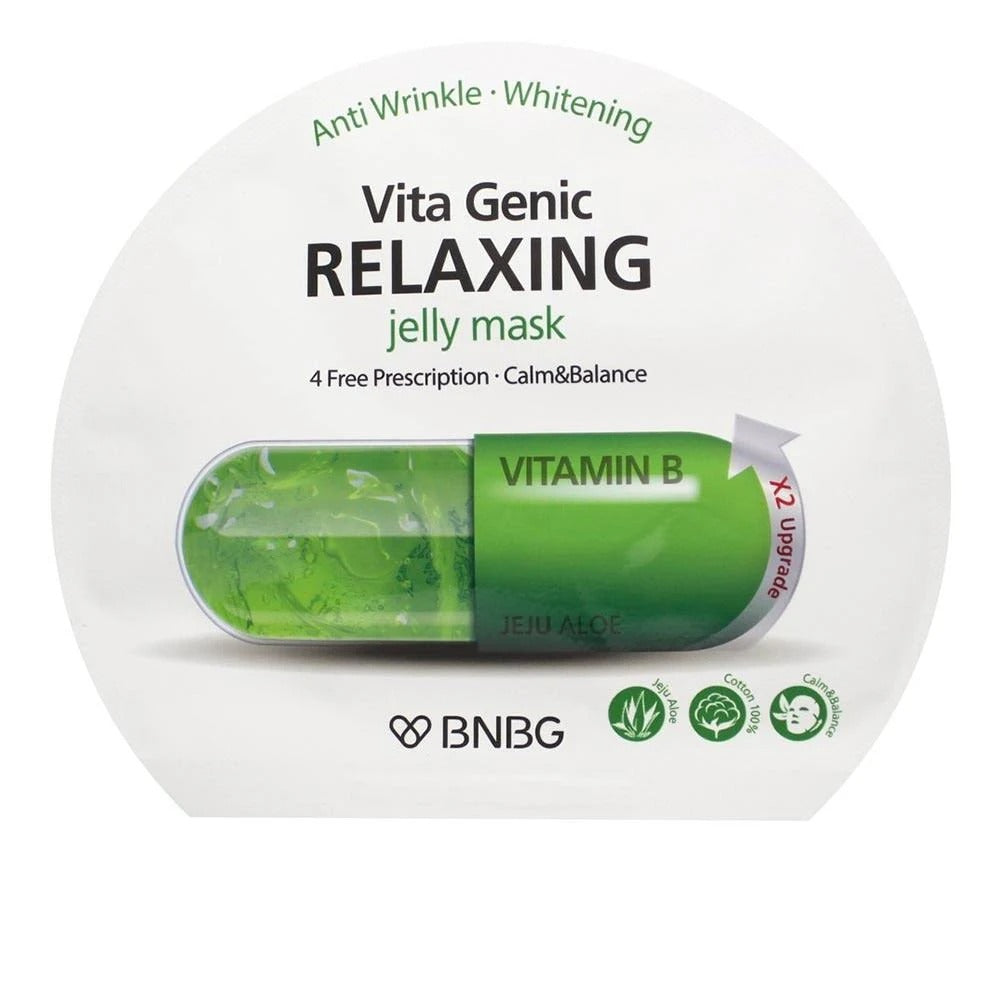 Mascarilla Banobagi Vita Genic Jelly Relaxing: Un tratamiento facial en formato de hoja con una textura de gelatina que calma e hidrata profundamente la piel. Enriquecida con pantenol, aloe vera, complejo de vitaminas y ácido hialurónico, esta mascarilla proporciona hidratación duradera, alivia la irritación y mejora la apariencia de la piel. Ideal para pieles sensibles, se absorbe fácilmente y deja la piel suave y refrescada. Modo de uso: Aplica sobre el rostro limpio y tonificado, déjala actuar durante 10-20 minutos y masajea el sérum restante para su completa absorción.