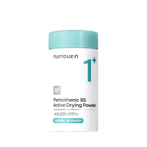 El Numbuzin No.1 Pantothenic B5 Active Drying Powder 7 g es un tratamiento en polvo antiblemish con 40 000 ppm de ácido pantoténico (B5), niacinamida y madecassosida. Controla el exceso de sebo, reduce brotes y calma la piel al instante. Puede usarse como parche seco directo sobre granitos o mezclado con tu crema/toner para regular oleosidad