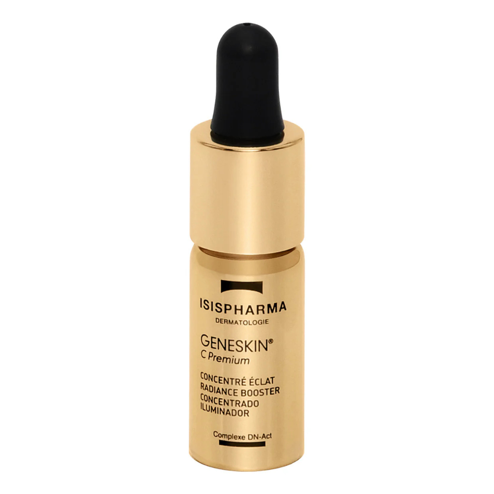 Geneskin C Premium de Isispharma es un serum concentrado que combina un 25% de vitamina C complex y vitamina E para brindar propiedades antioxidantes que mejoran la luminosidad y unifican el tono de la piel. Para usarse por las mañanas.