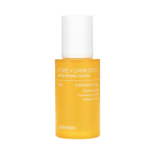 El suero iluminador Celimax Pore+Dark Spot Brightening Serum mejora el tono y la textura de la piel, reduciendo la pigmentación post-acné y unificando el tono. Con 5% de niacinamida, 3% de ácido tranexámico y Melazero®, combate la hiperpigmentación y mejora la elasticidad. Su fórmula con hialuronato de sodio hidrata profundamente y reafirma, mientras que el bisabolol calma la piel. Ideal para el uso diario, sin causar irritación ni sequedad.