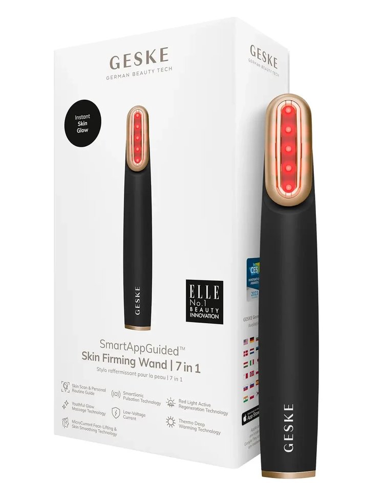La Varita Reafirmante 7 en 1 de GESKE combate los signos del envejecimiento, reafirmando y tonificando la piel. Con microcorrientes, luz roja y masaje sónico, mejora la elasticidad, reduce arrugas y revitaliza la piel. Su función de calentamiento profundo proporciona relajación, mientras que el cabezal giratorio permite un tratamiento completo. Uso diario para mejorar brillo, textura y firmeza.